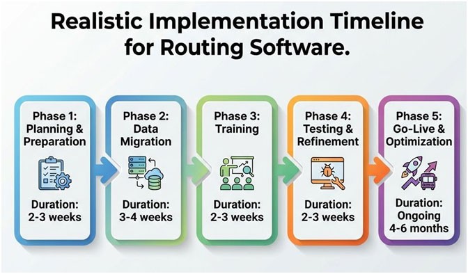 Build sample routes. Simulate edge cases. Identify configuration issues. Run parallel operations where old and new systems operate simultaneously.
